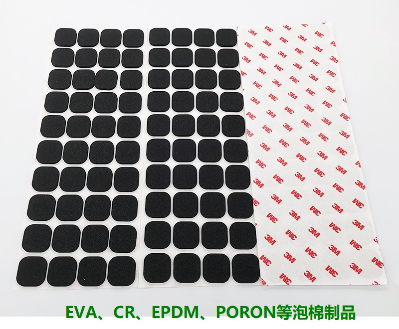 PORON系列、EVA、EPDM、CR、硅橡膠、丁氰橡膠、PU發(fā)泡等材料,并貼合各種功能的雙面膠。