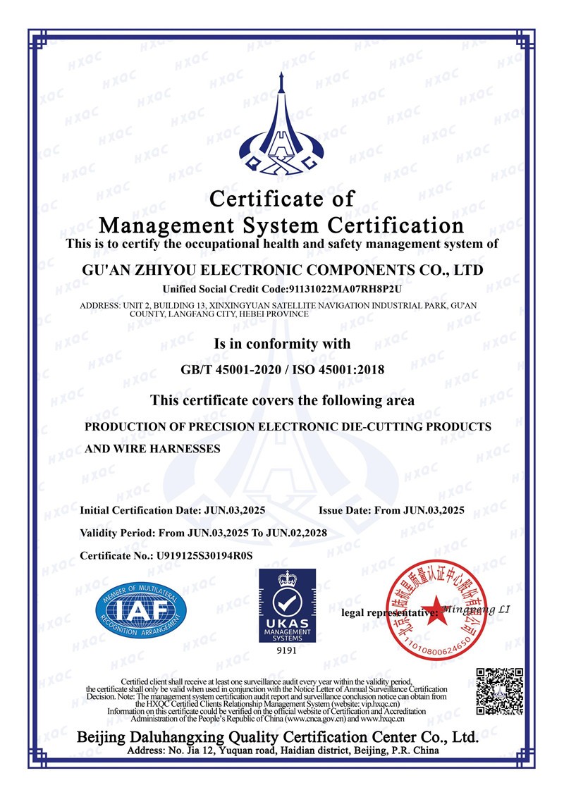 職業(yè)健康安全管理體系認(rèn)證證書